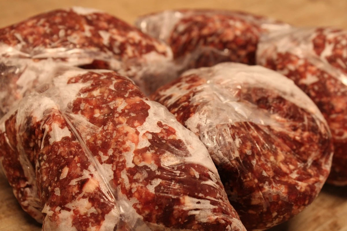 Vers vlees voor de hond, gemaakt van restvlees van het rund. Bij het slachten en verwerken komt er mooi vlees vrij wat niet geschikt is voor menselijke consumptie. Daarom verwerken wij dit in kwalitatief hondenvlees. Wij verwerken geen pens in ons product, waardoor het niet zo gaat stinken. Enkel hart, kopvlees, nieren, lever en soms tong. Ook doen we er niks van zout in, het is puur vers vlees, met 10% rijst voor de completere voedingswaarde. Wij verpakken dit in zakjes van 500 gram en vriezen het vervolgens in. Let op: momenteel is het vlees zo populair, dat het vlees meestal vers verzonden wordt. Hierdoor is het vlees dus vaak niet of nauwelijks bevroren wanneer het bij u thuis aankomt. Wel kunt u het na het uitpakken zelf invriezen, juist omdat het vers is. Uw hond ook trakteren op dit lekkere verse vlees, zonder toevoegingen van zout of iets dergelijks? Dat kan! Zo gauw u het besteld ontvangt u een track and trace van onze transporteur voor vers vlees: Trunkrs. Dit bedrijf haalt de pakketten ’s ochtends bij ons op, waarna de pakketten ’s avonds al bezorgd worden. Is de verzending vertraagd of was u niet thuis? Geen probleem, uw pakket wordt veilig opgeslagen in de diepvries van Trunkrs. Zo blijft u pakket altijd in de beste conditie.