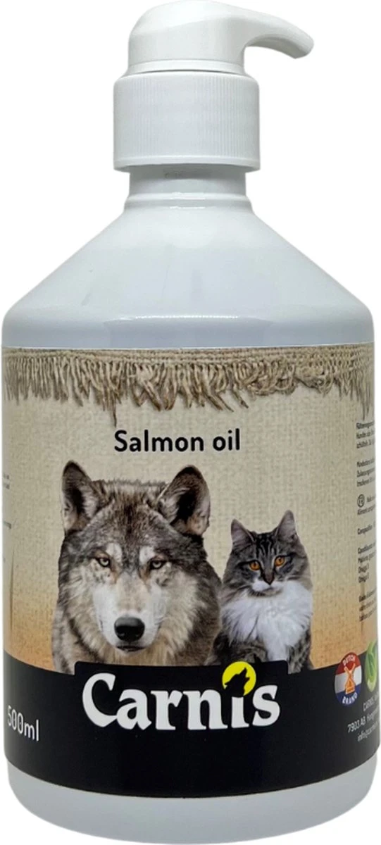Carnis zalmolie is een 100% zuivere olie, afkomstig van duurzaam gekweekte zalm uit Schotland. Het bevat een grote hoeveelheid aan Omega-3 vetzuren, alsmede een natuurlijk noodzakelijke hoeveelheid aan Omega-6 vetzuren.