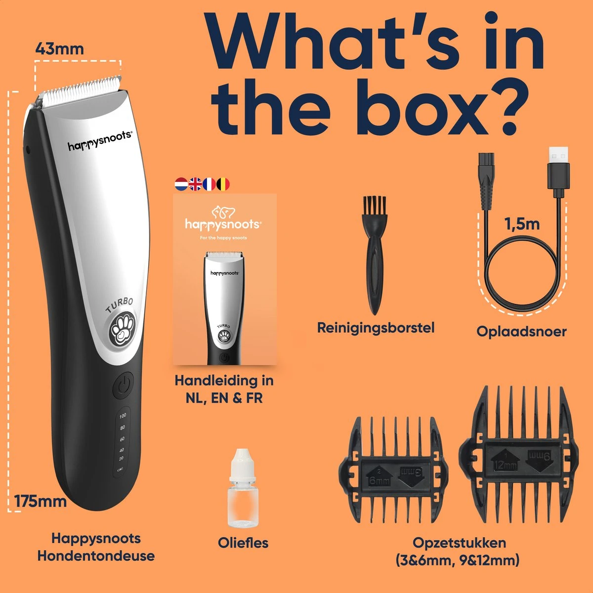 โฝ VOOR ELK VACHTTYPE: De Happysnoots Pet Trimmer wordt geleverd met 2 verschillende opzetstukjes zodat je de juiste kam kunt gebruiken voor de juiste vacht en lengte. De aangeboden kammen variรซren van 3 tot 12 mm (4 lengtes).