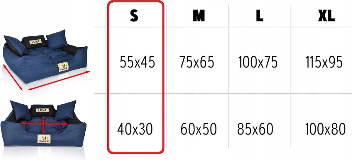 KingDog hondenbed voor uw hond of kat Maat: “XL” 115×95 Maat: “L” 100×75 Maat: “M” 75×65. “S” 55 x 45. PVC waterdichte codura – in de kleur van het bed. Stof gemakkelijk te reinigen en vlekbestendig. Twee kussens – De onderkant van het bed is gemaakt van gemakkelijk te reinigen materiaal. Er is een fabrikant naam patch op de voorkant van het hol.
