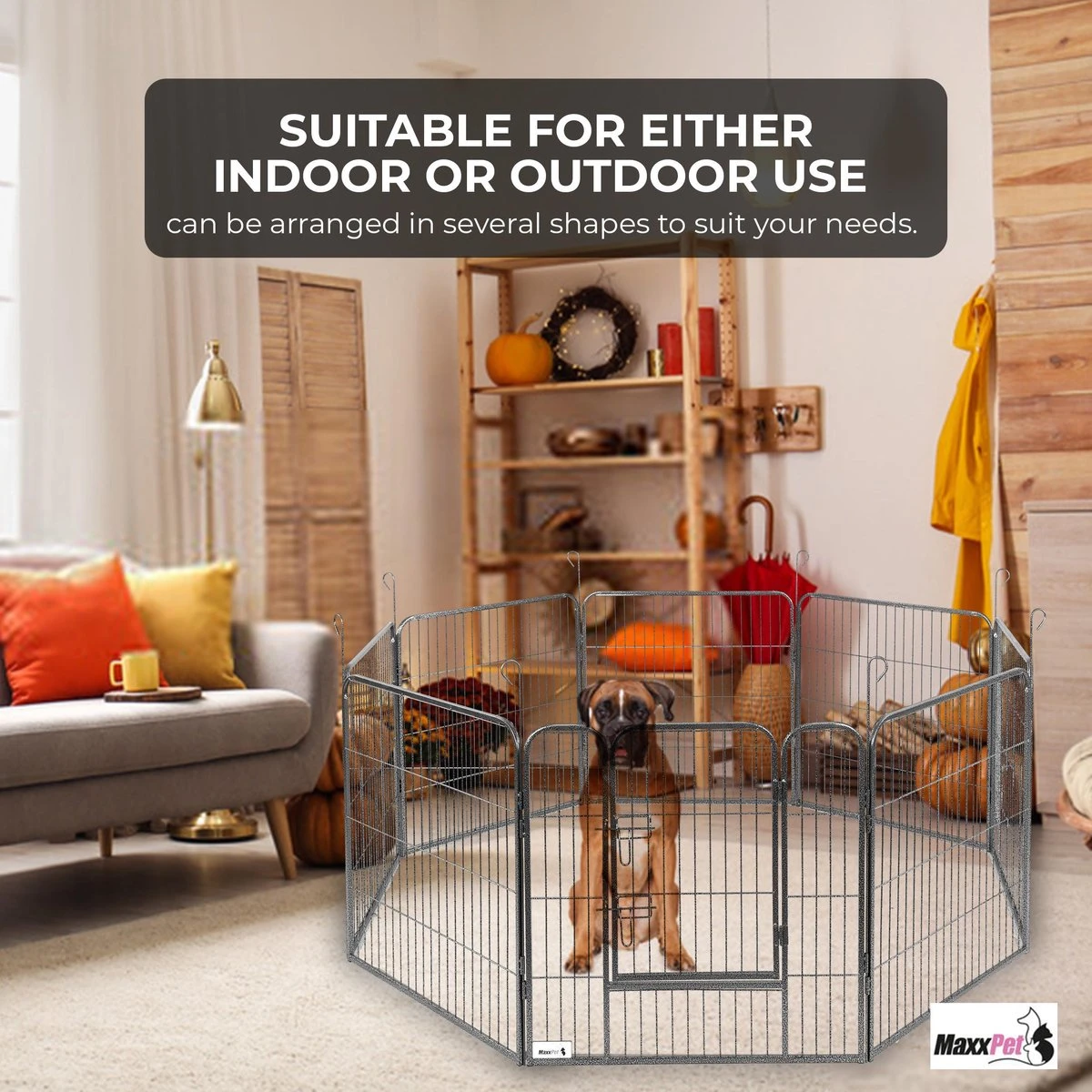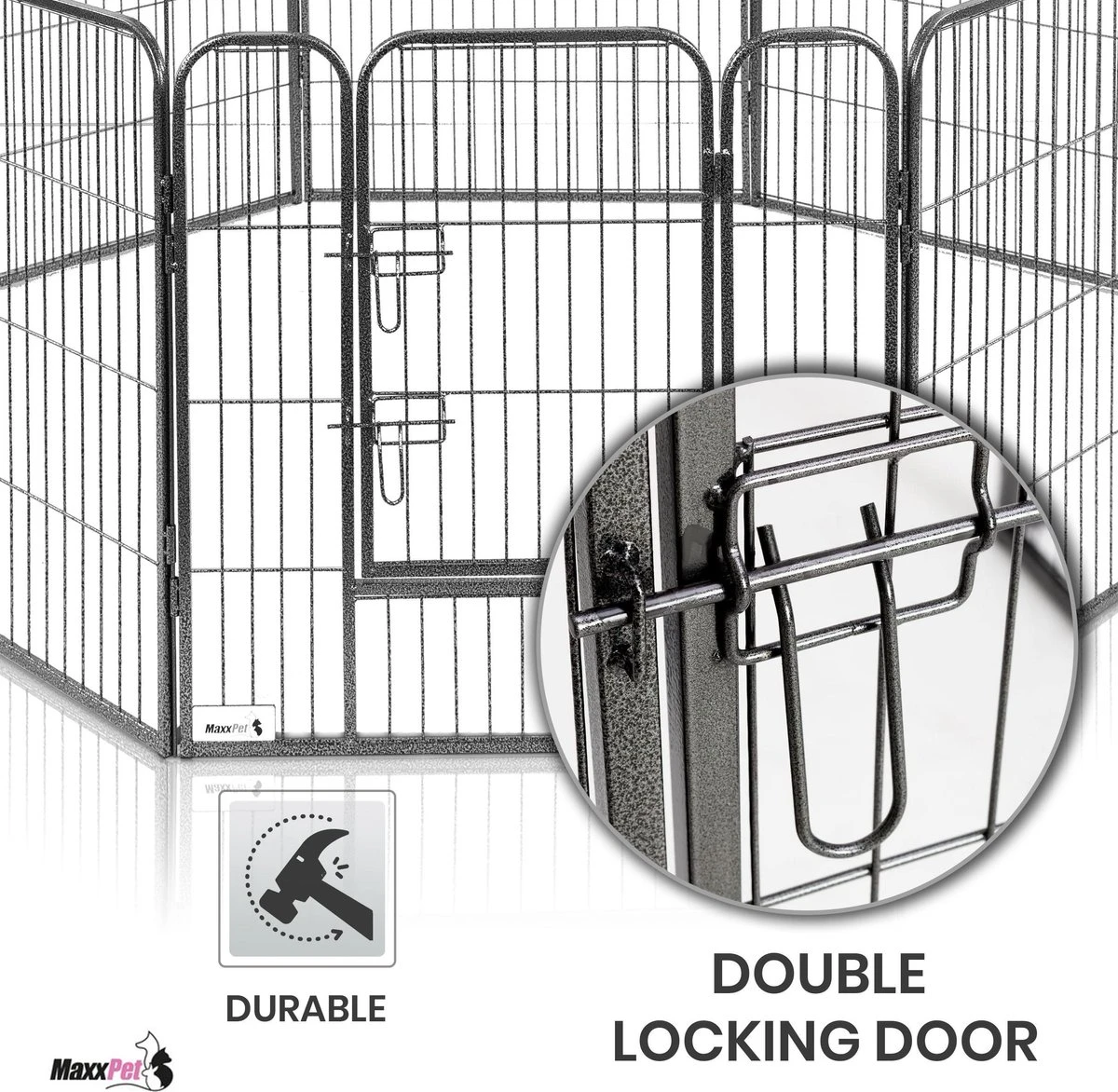 Op zoek naar een veilige en stevige puppyren? Deze puppyren van MaxxPet is ideaal voor het opvoeden van je puppy. Een pup heeft dag en nacht behoefte aan een liefdevolle verzorging. Deze ren zorgt ervoor dat je pup zorgelloos kan spelen terwijl je niet steeds je aandacht erbij hoeft te houden. De ren is zeer veilig en door zijn dikke frame van 1,5 centimeter staat hij stevig op iedere ondergrond.