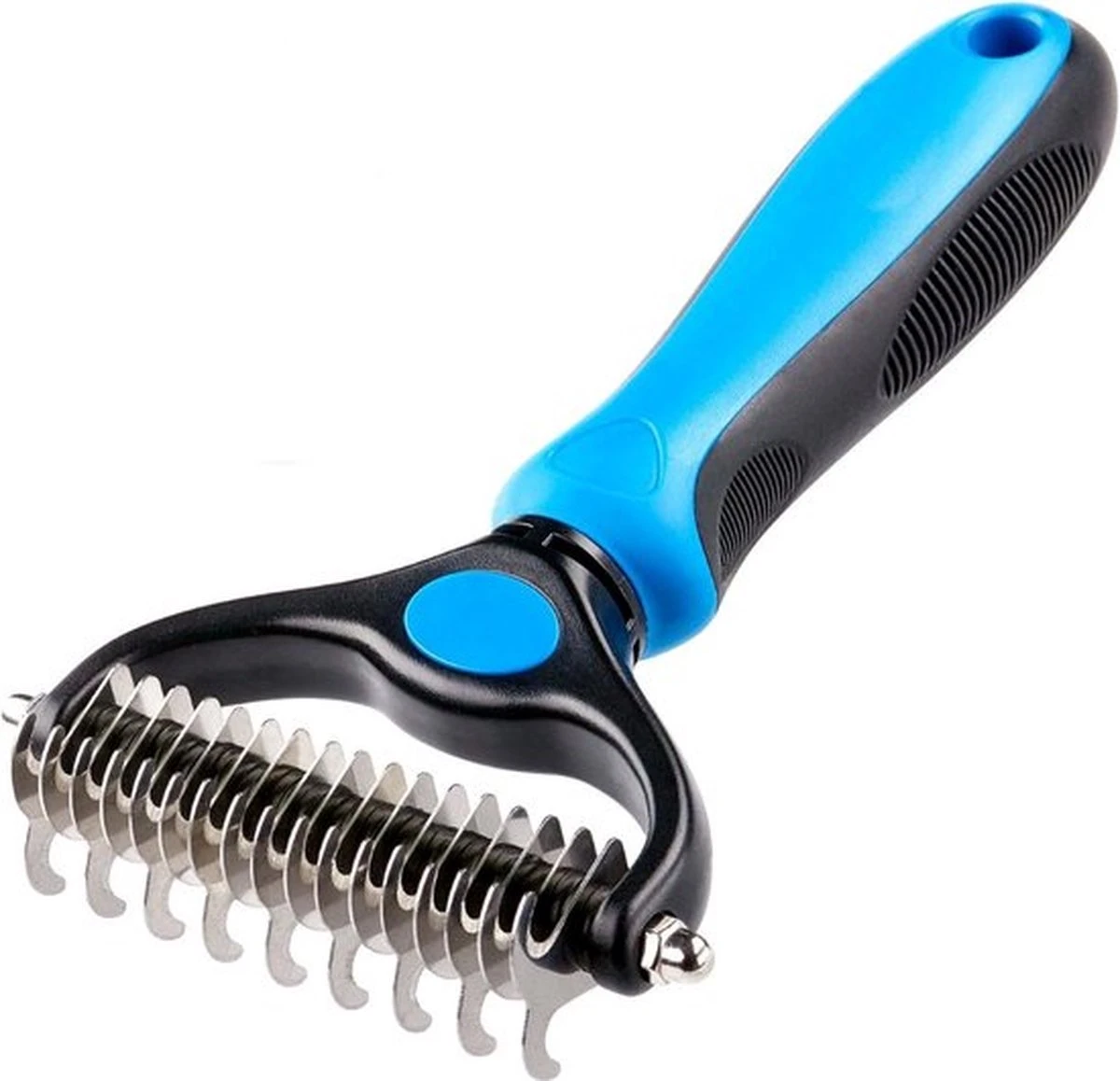 Professionele 2-Zijdige Ondervacht Kam voor Hond en Kat – Hondenborstel – Kattenborstel – Klittenkam – Verwijdert Klitten – Voorkomt Haaruitval – Blauw – Zwart