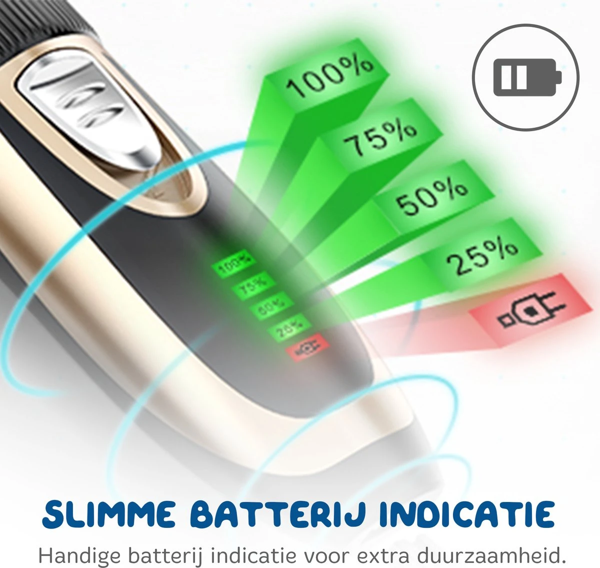 De tondeuse van Pawwyยฎ is uitgerust met een krachtige 2000 mAh batterij en het heeft een maximaal geluidsniveau van slechts 50 decibel. Hierdoor zal jouw huisdier zich vertrouwd en fijn voelen tijdens een trimbeurt en kan je op een veilige wijze een optimaal resultaat behalen. Verder biedt het een professionele knipervaring met een gelijkmatig resultaat, zodat het scheren eenvoudig en soepel verloopt.